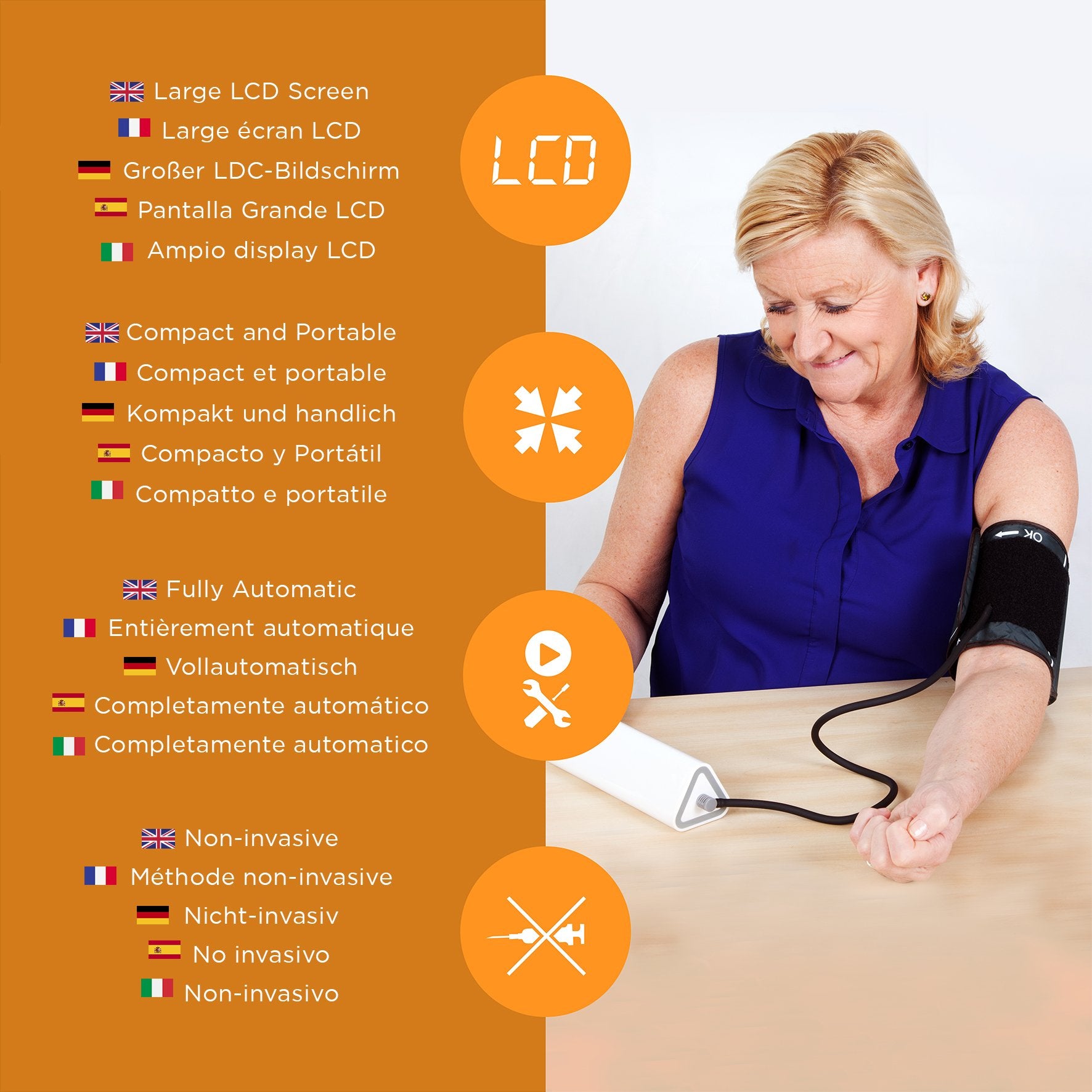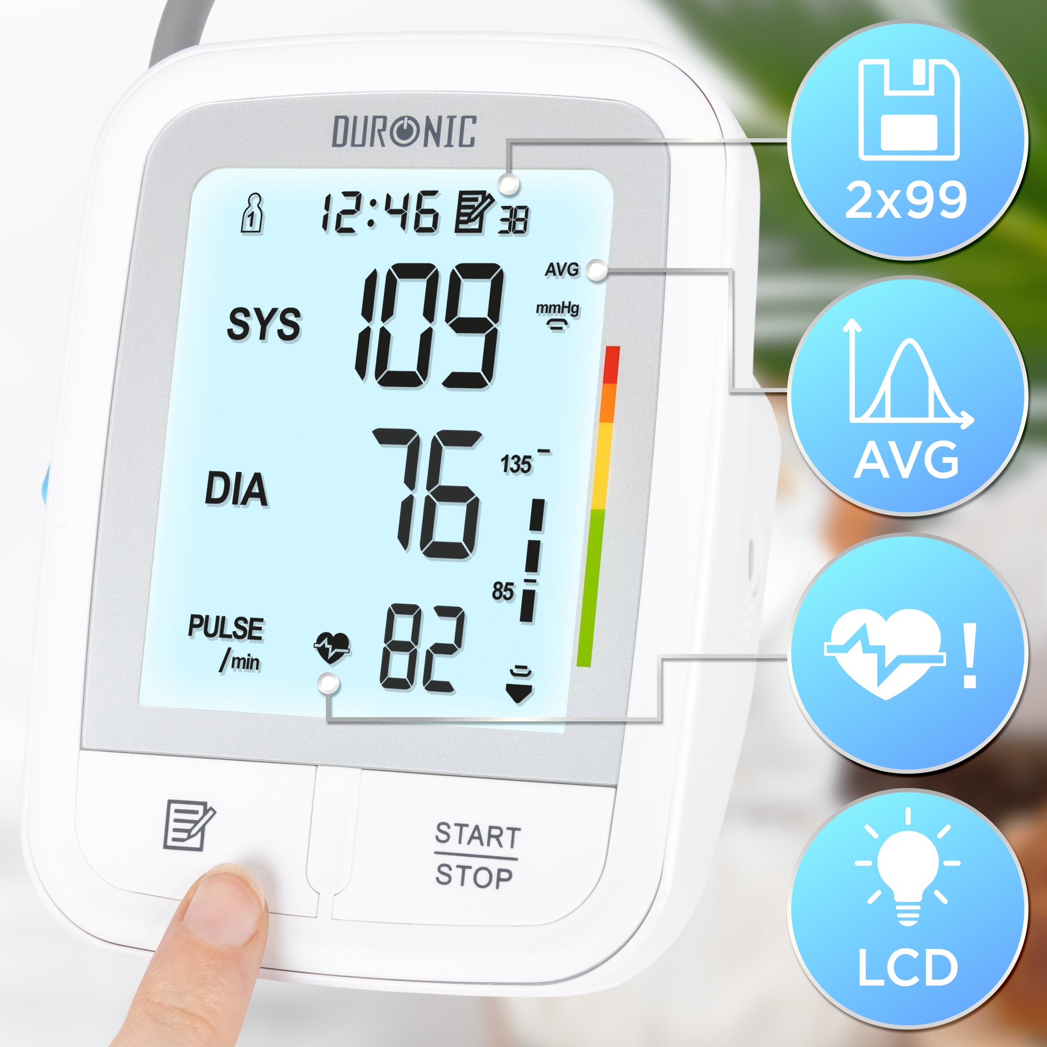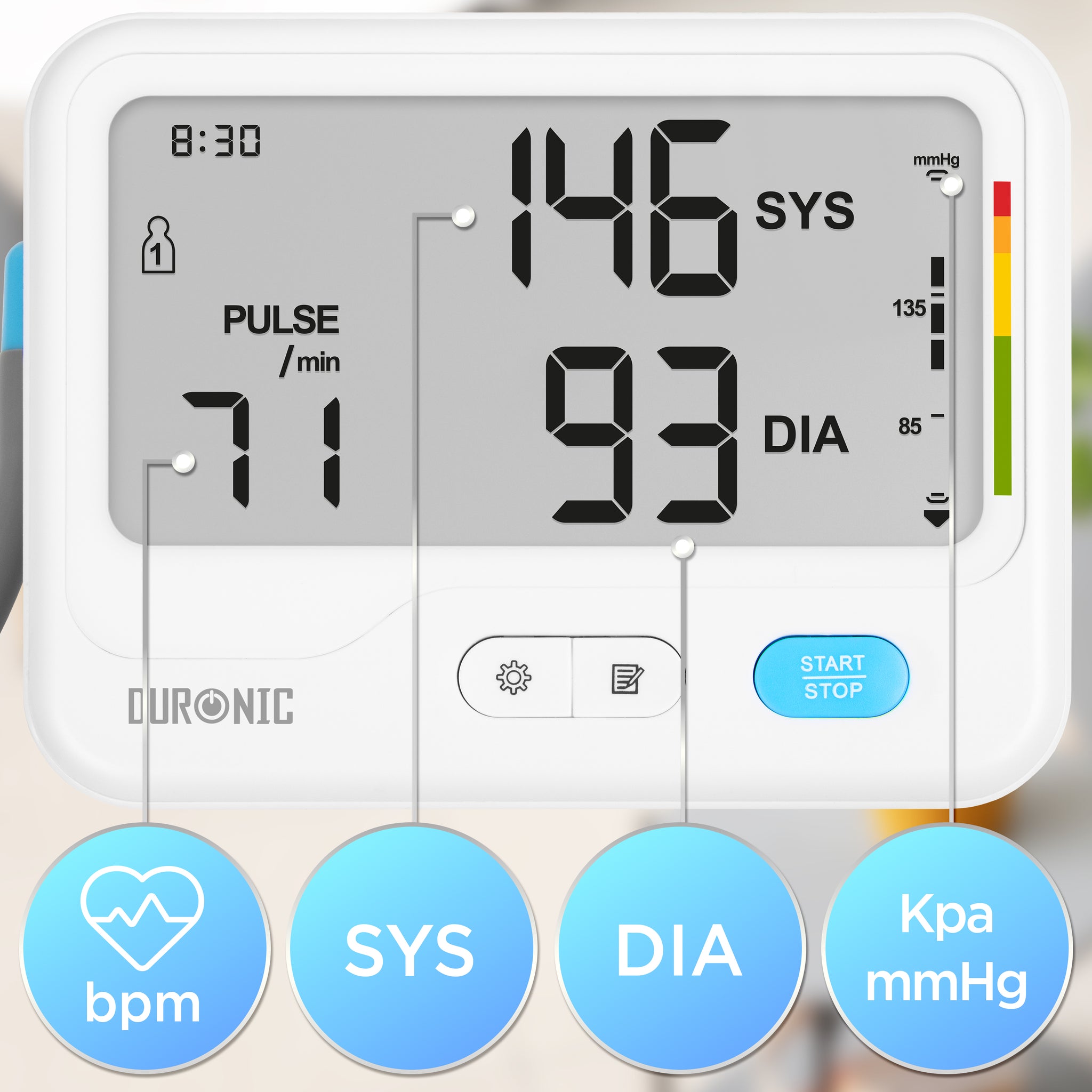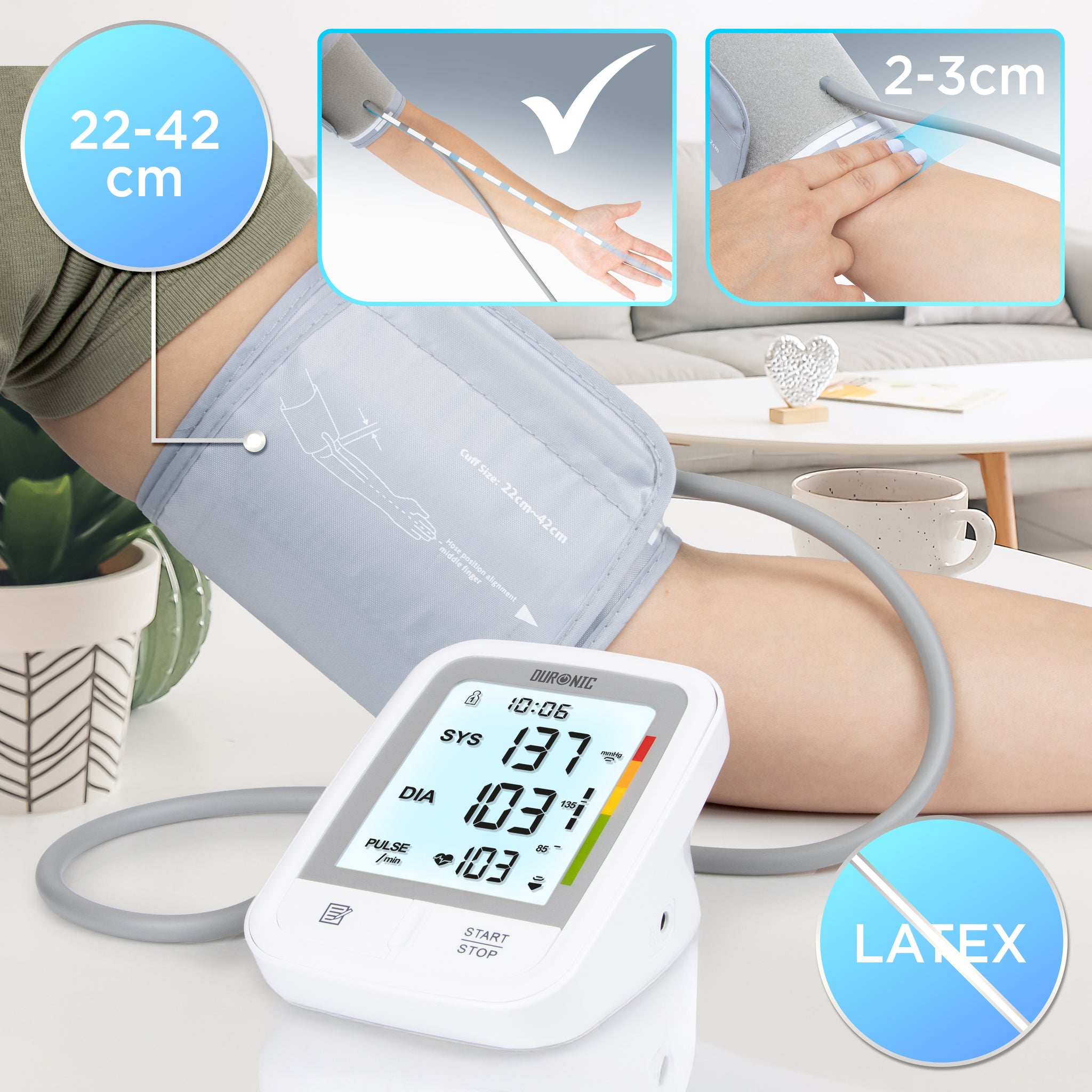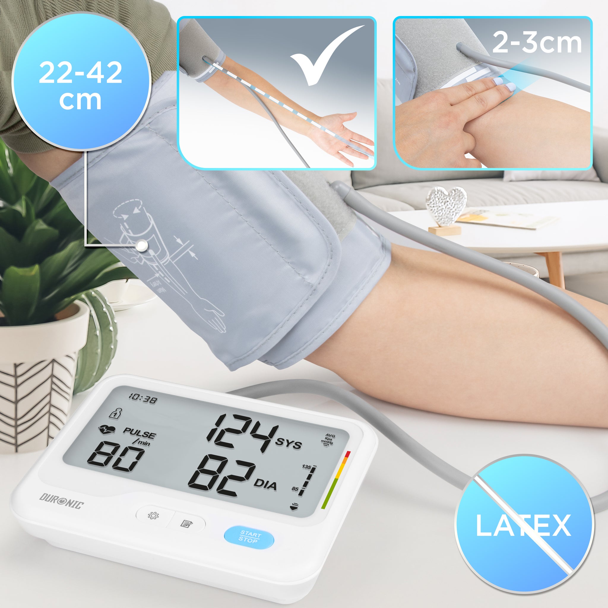 Duronic BPM65 Blutdruckmessgerät, Blutdruck messen für Bluthochdruck, Messgerät mit großem Display, Oberarm Blutdruckmessgerät mit Manschette