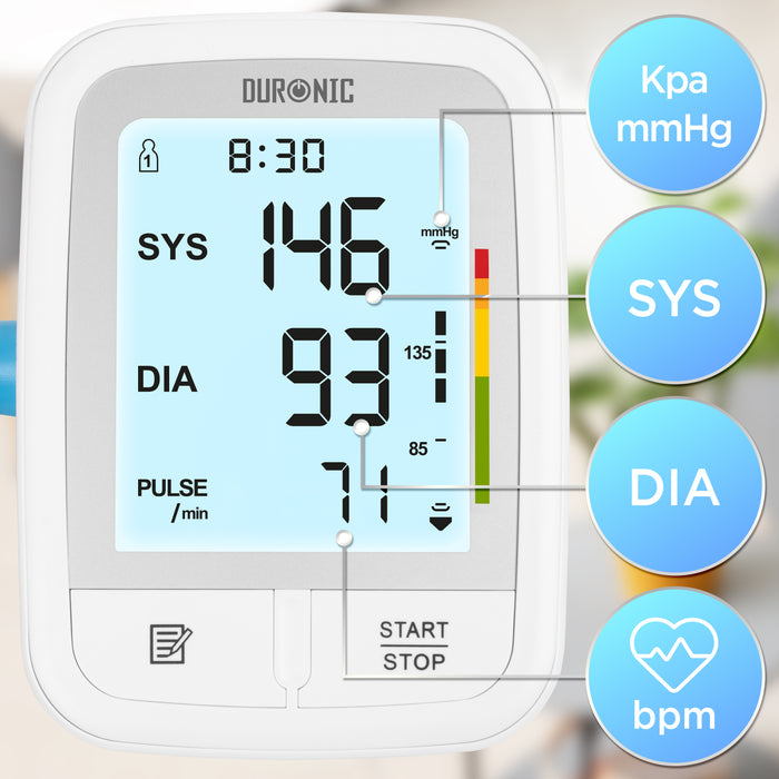 Duronic BPM95 Blutdruckmessgerät, Blutdruck messen für Bluthochdruck, Messgerät mit großem Display, Oberarm Blutdruckmessgerät mit Manschette