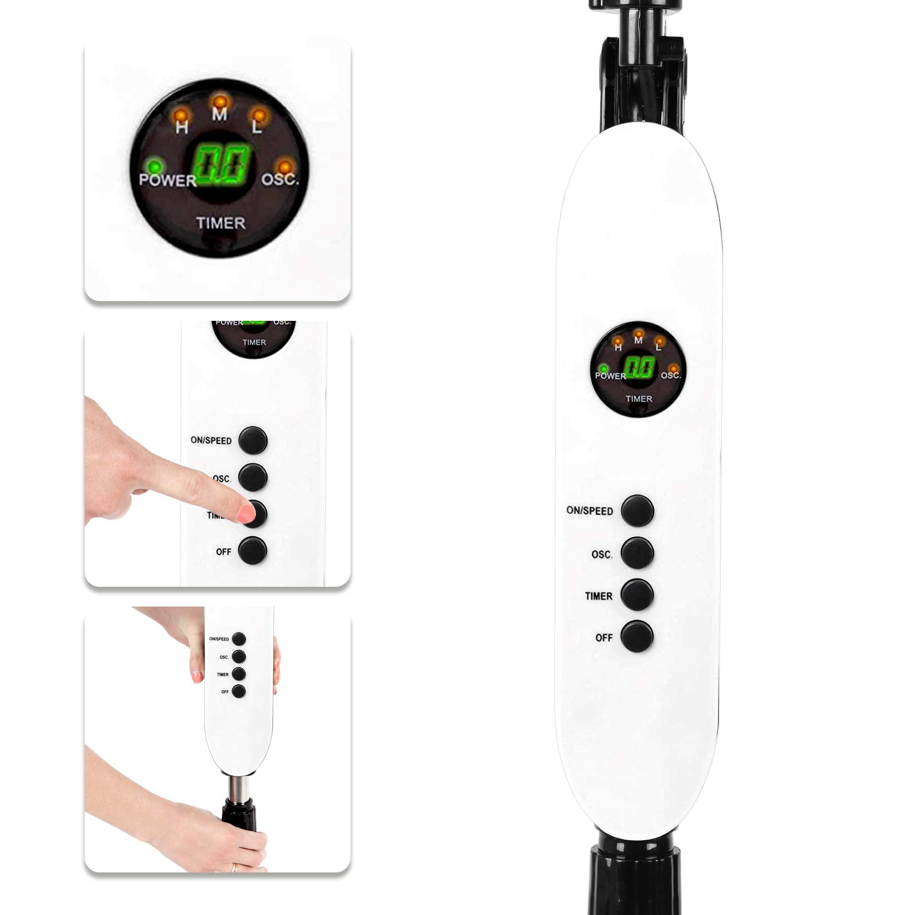 Der Ventilatorkopf liefert kühle Luft in einem Winkel von 90 Grad, Sie können den Ventilator auch in nur eine Richtung verwenden. Je nachdem, wie viel Abkühlung benötigt wird, können Sie zwischen 3 Programmen wählen, so haben Sie Kontrolle über die Luftgeschwindigkeit. Die 5-teilige Klinge wird in einer einzigen Umdrehung mehr Luft aufnehmen, um mehr Abkühlung zu erzeugen.